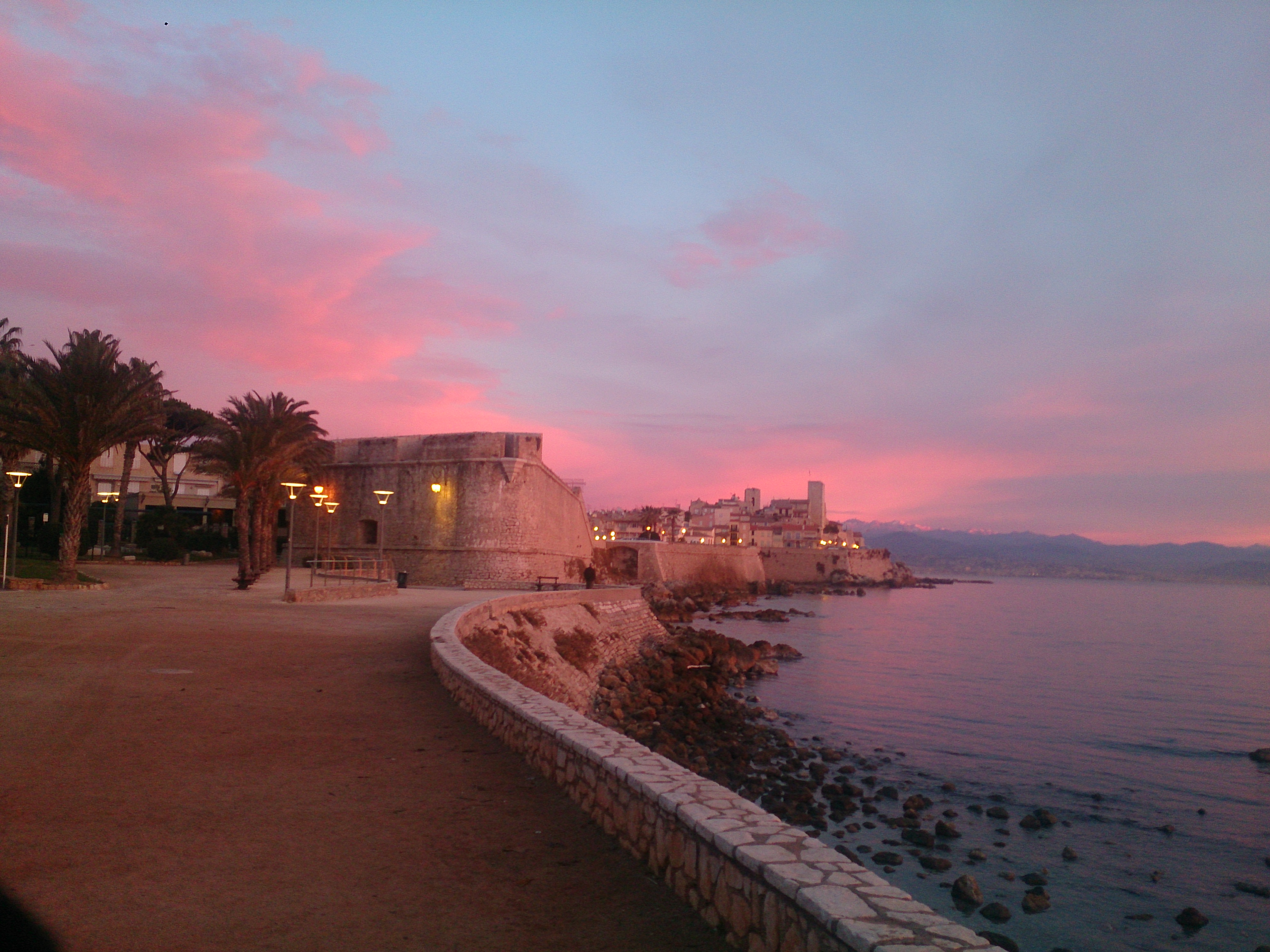 Bilden visar Bastion St André (byggd av Vauban) och gamla stan i Antibes i soluppgång häromdagen.